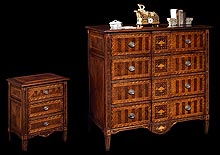 Комод и тумбочка в стиле Директории из ореха с инкрустациями из клена и перламутра.